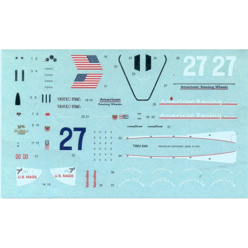 Decals for Parnelli VPJ4B by THIS WAY UP Ref TWU044 : Type: Decals 1/43