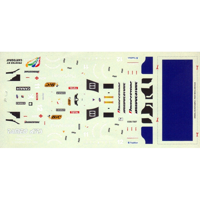 Decals Prost AP01 by TAMEOKITS Ref DKTMK257 Scale 1/43 Driver(s): Panis, Trulli - GP : San Marino 1998