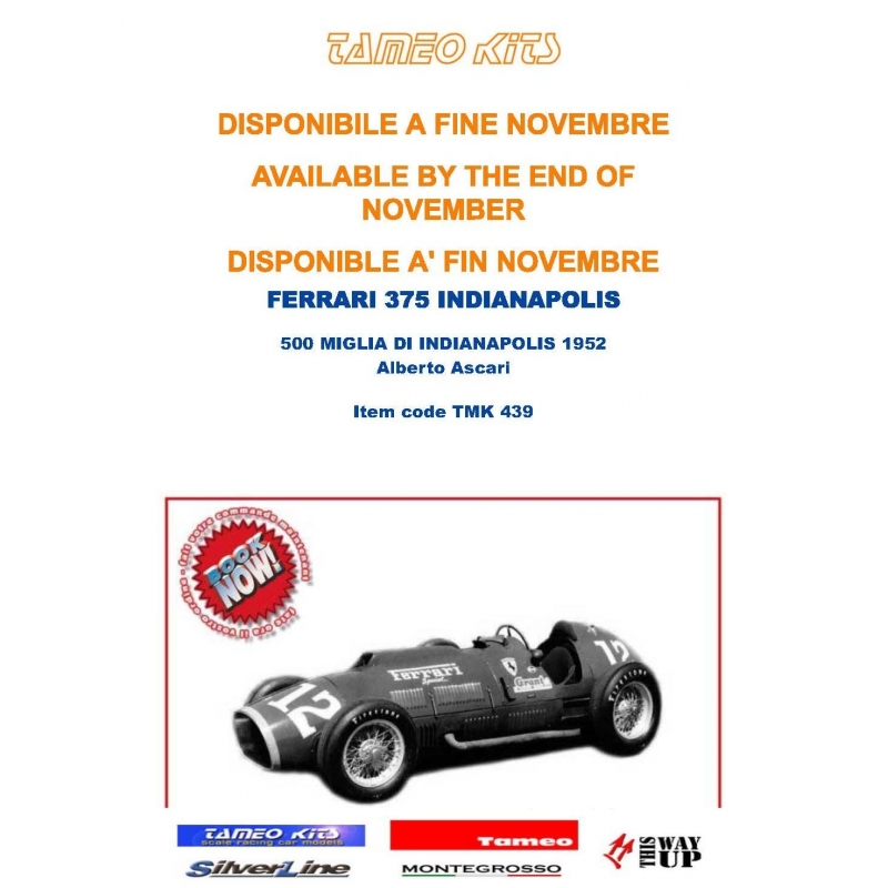Ferrari 375 by TameoKits Ref TMK439 - Driver(s): Ascari - GP : Indianapolis 1952 - Item : White Metal - Scale 1/43 - Type: Kit