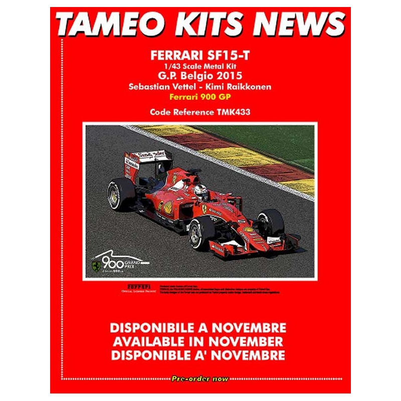 Ferrari SF15-T by TAMEOKITS Ref TMK433 : Type: Kit Scale 1/43 Item : White Metal Driver(s): S. Vettel - K.Raikkonen GP : Belgium 2015 ( 900th Grand Prix)