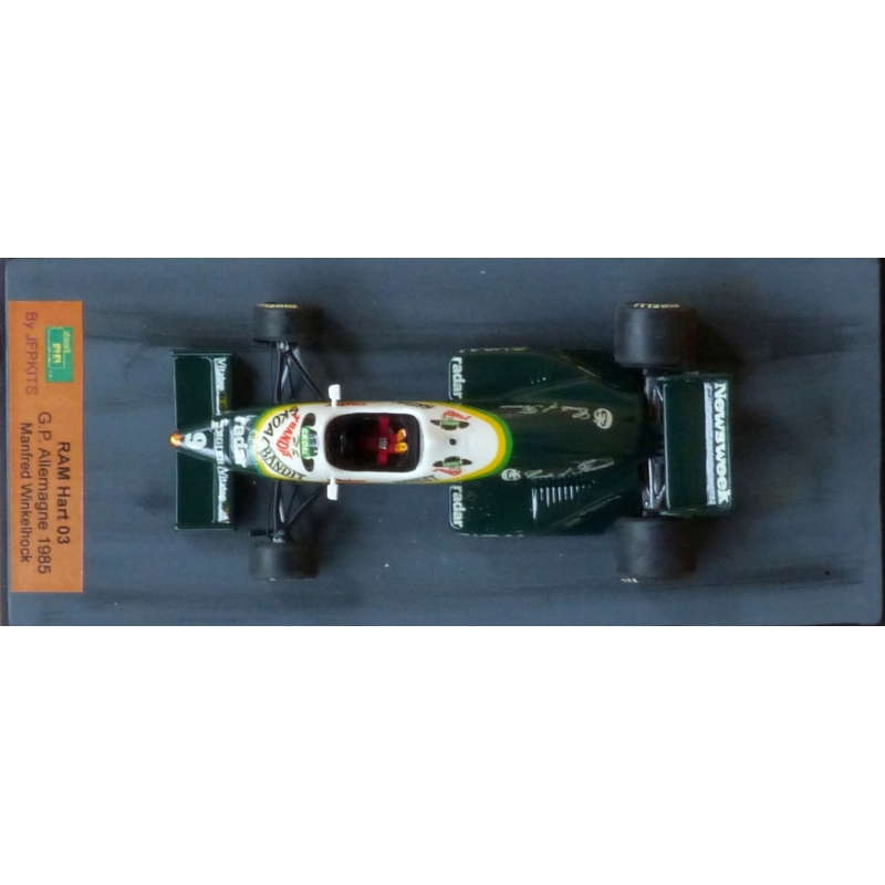 RAM Hart 03 by HI-FI Ref JFPKHF00 : Paints: ZeroPaints ZP1188-ZP1263-ZP1190- RAL 9010 Type: Used Kit restored by JFPKITS Scale 1/43 Item : White Metal Driver(s): Manfred WINKELHOCK GP : Germany 1985