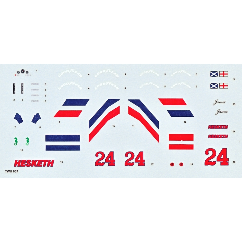 Decal Hesketh Ford 308C by THIS WAY UP Ref DKTWU007 : Pilote(s): James Hunt GP : Italie-Canada 1975