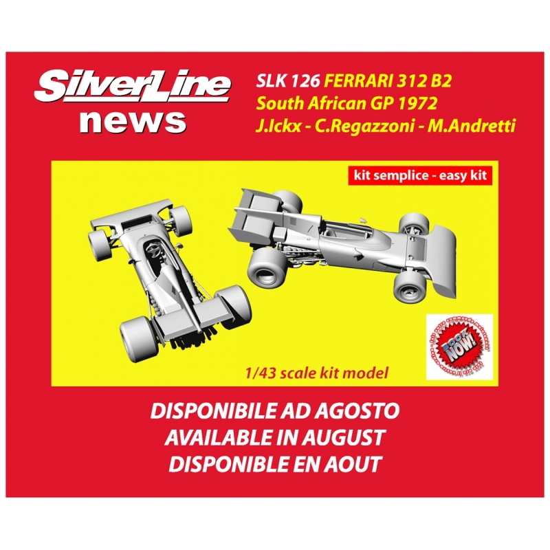 Ferrari 312B2 by SilverLine ref SLK126- GP Afrique du Sud 1972 - Pilotes: Ickx , Andretti, Regazzoni - Produit: White Metal - Echelle 1/43