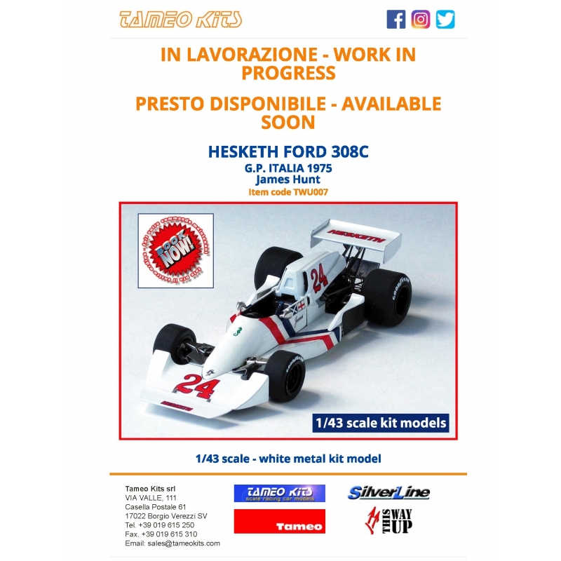 Hesketh Ford 308C by THIS WAY UP Ref TWU007 - Pilote(s): James Hunt - GP : Italie 1975 - Produit : White Metal - Echelle 1/43e - Type: Kit