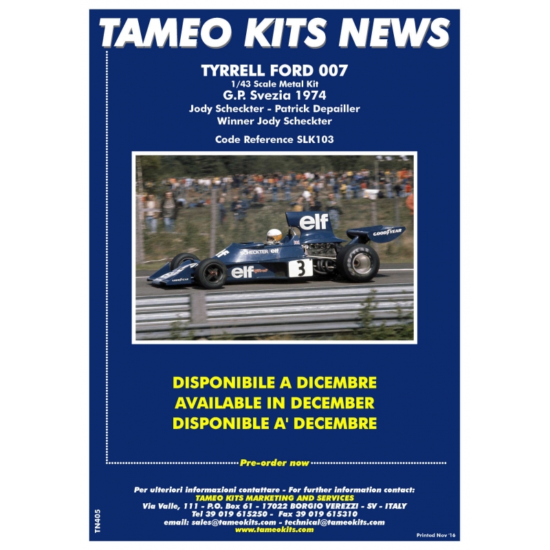 Tyrrell Ford 007 by SILVERLINE Ref SLK103 - Type: Kit - Echelle 1/43e - Produit : White Metal - Pilote(s): Jody Scheckter, Patrick Depailler - GP : Suède 1974